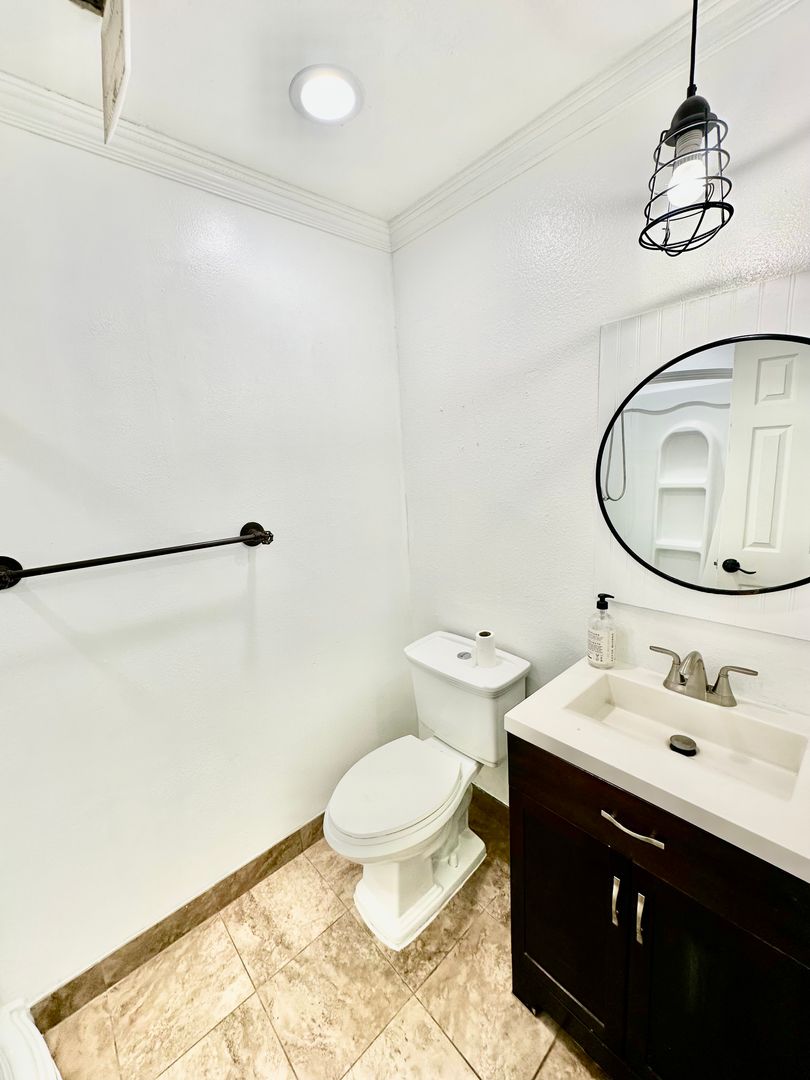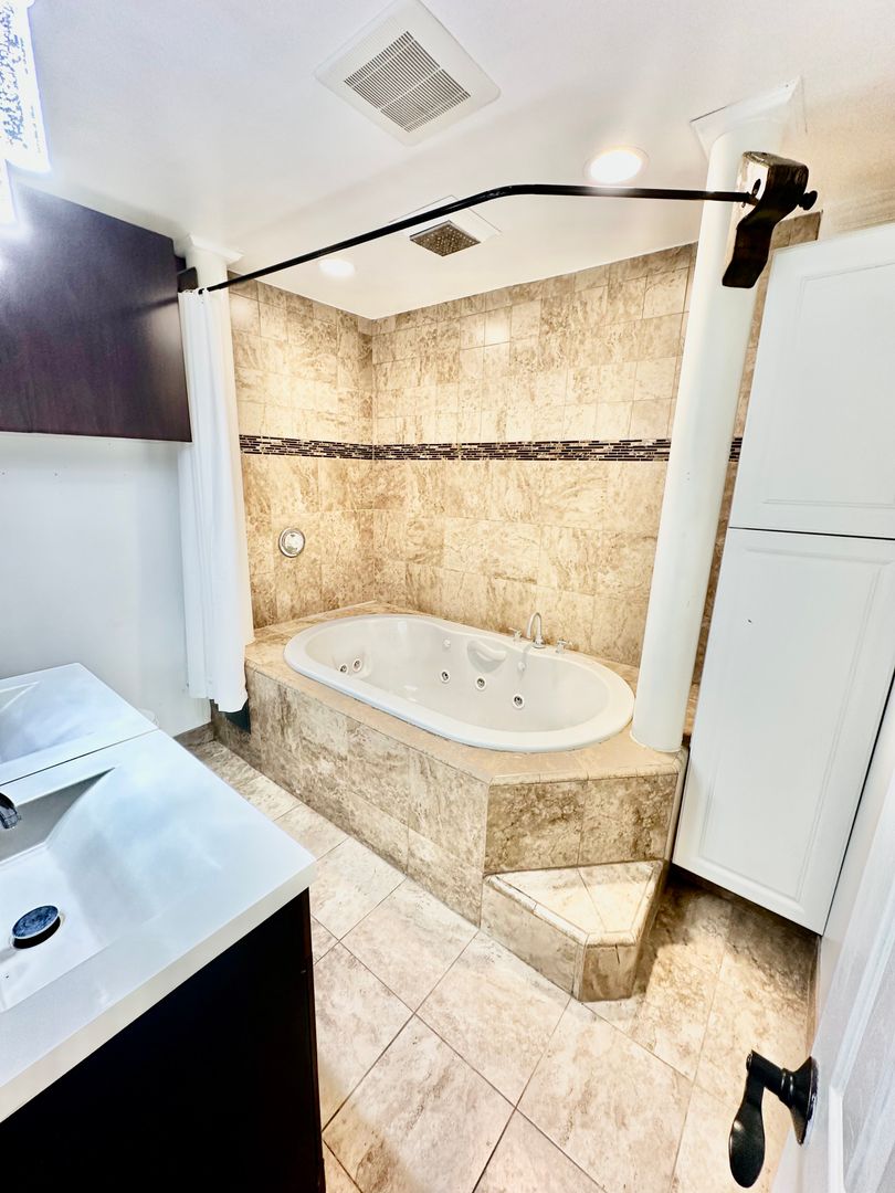 Charming 3-bedroom 2-bath home in family-friendly neighborhood. Home is nicely updated with vinyl plank flooring, newly remodeled kitchen and bathrooms, and new lighting fixtures. All bedrooms are oversized and master bedroom includes en suite with large jacuzzi tub. This home sits on a large lot and backyard features covered patio and basketball court.