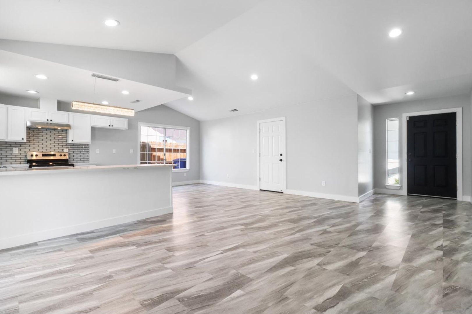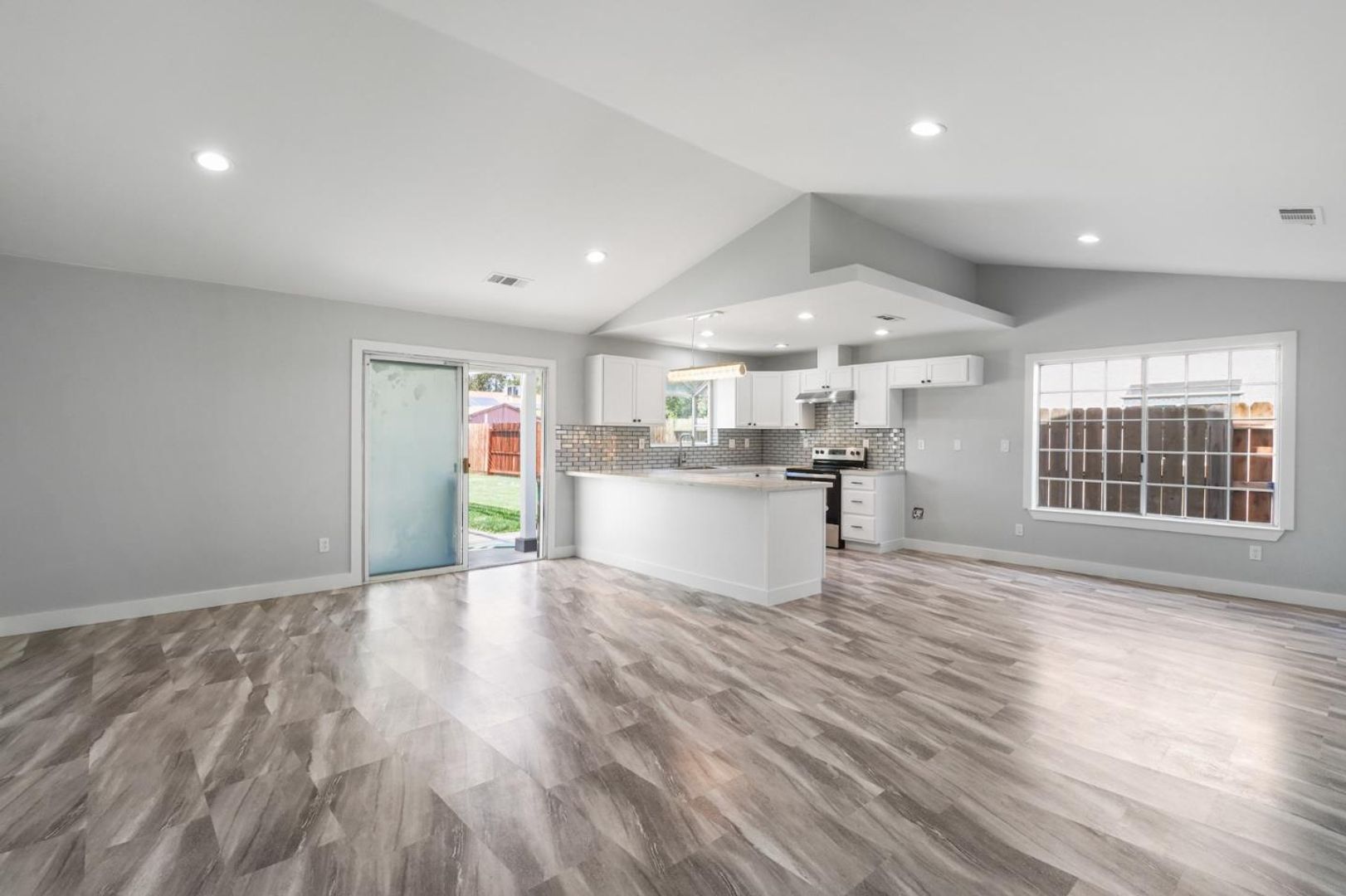 This stunning home is perfect for entertaining, featuring an open floor plan with vaulted ceilings. The kitchen opens up off of the living room and includes new counter tops, backsplash, high-end appliances, and additional breakfast bar. All bedrooms are incredibly spacious and master bedroom includes private backyard entrance and en-suite with walk-in closet and fully renovated bathroom. The large back yard is nicely landscaped and features extra-large covered patio and sparkling pool for those hot summer days.