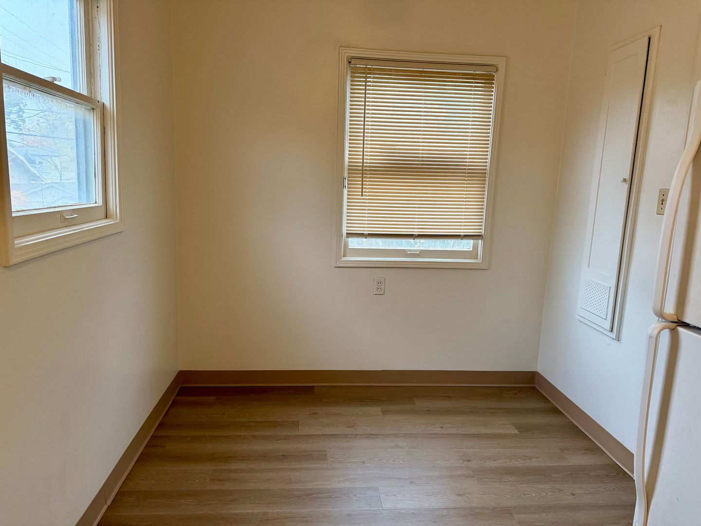 12 month lease. Refrigerator provided and on-site laundry room